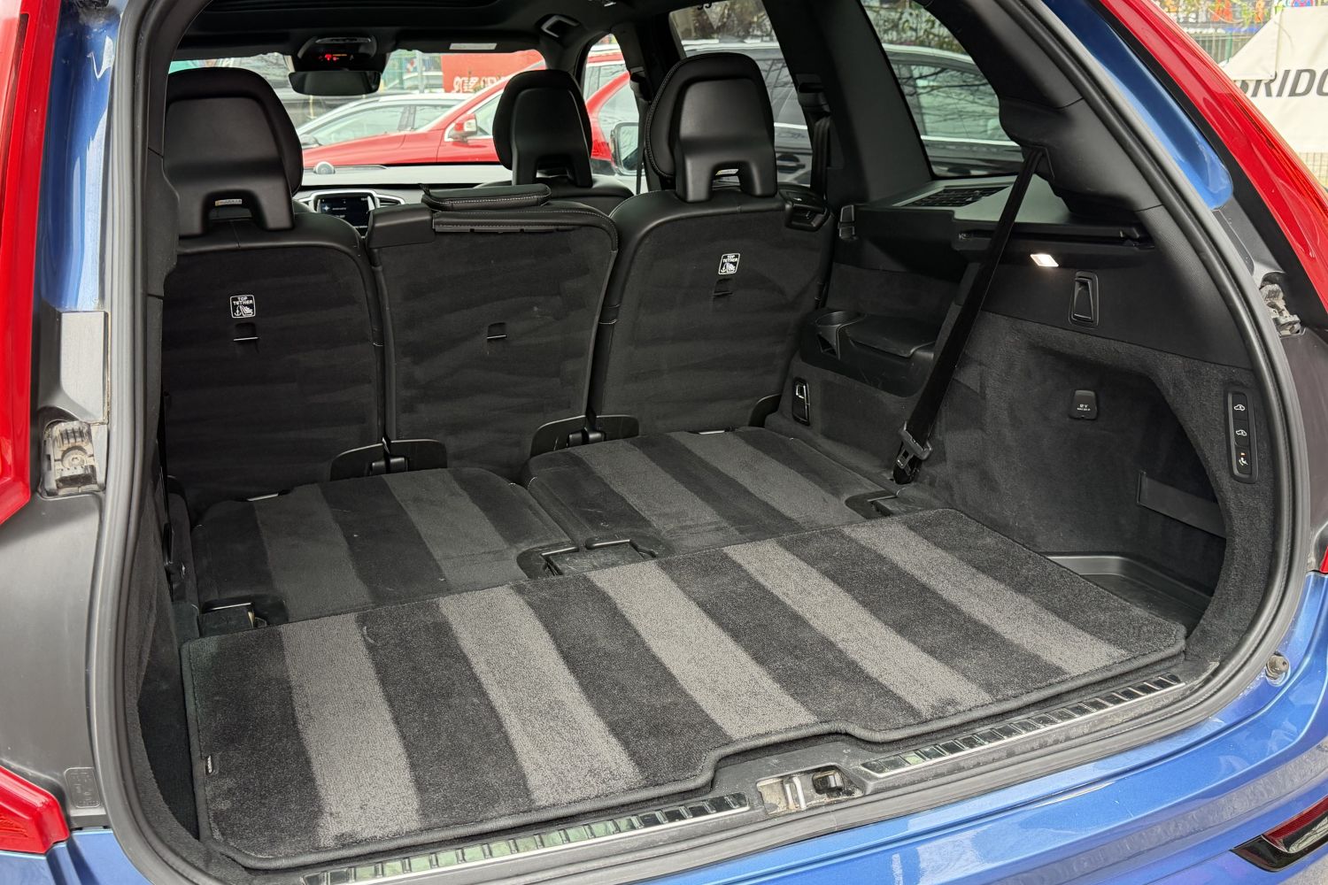 | Výbava | 7 míst, Bowers & Wilkins audio, 360° kamera, CarPlay & Android Auto, Start/stop, navigace, Volvo On Call, Keyless, Pilot Assist, BLIS, Lane Keeping Aid, CTA, nezávislé topení, 4-zónová klimatizace, head-up display, elektricky nastavitelná přední sedadla, vyhřívané sedačky vpředu i vzadu, vzduchový podvozek, výsuvné tažné zařízení, panoramatická střecha, černý kožený interiér, ALU R20 |